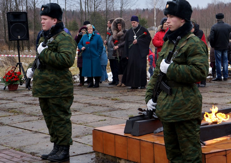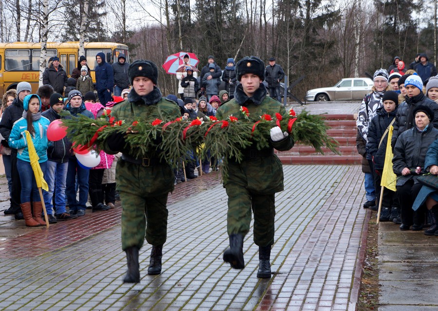 Уже второй год традиционный митинг, который проводится 5 декабря у мемориала сержанту Васильковскому, посвящен не только годовщине начала контрнаступления под Москвой, но и новой дате в календаре воинских мемориальных дат — Дню неизвестного солдата, который отмечается в нашей стране с 2014 года. Несмотря на мелкий дождь со снегом, на площадь перед монументом Васильковскому собралось около трехсот человек – школьники из Вахонино и Конаково, педагоги, члены военно-поисковых отрядов, и, конечно, наши заслуженные ветераны.