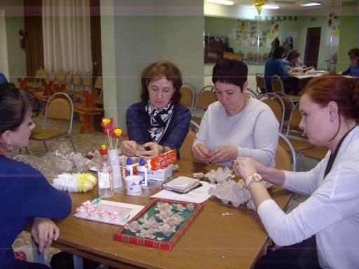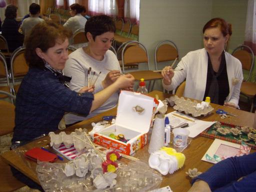 Участники семинара научились делать объемные цветы из воздушных шариков, оригинальные рыбки и животных из пластиковых коробок киндер- сюрприза, выполнили аппликацию на летнюю тему в необычной технике из цветной бумаги, оформили фоторамки цветами с помощью обыкновенных картонных коробок для яиц.