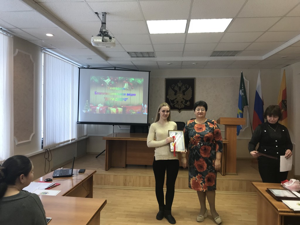 В районе проводится большая добровольческая и благотворительная работа. Ежегодно, на протяжении более 10 лет, молодежный центр «Иволга» в преддверии Нового года собирает подарки детям из семей, находящимся в неблагоприятном социальном положении. В этой акции участвуют все жители Конаковского района. В новогодние праздники Дед Мороз и Снегурочка постучали в двери 120-ти детей. Поблагодарила добровольцев и активистов за их важную деятельность заместитель главы администрации Конаковского района по социальной политике Аггюль Бородина.